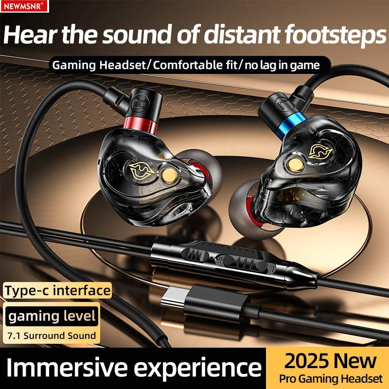 Gaming Earbuds 9D Surround Sound Type C&3.5mm Wired Earphones In Ear Headphones Noise reduction Headsets for Samsung In HD Mic