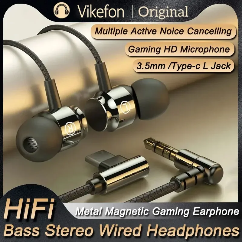 NEW Magnetic Wired Game Headphone L Jack HIIF Bass Stereo Music Headset 3.5mm AUX Type-c Earphone For Mobile Phones and Computer