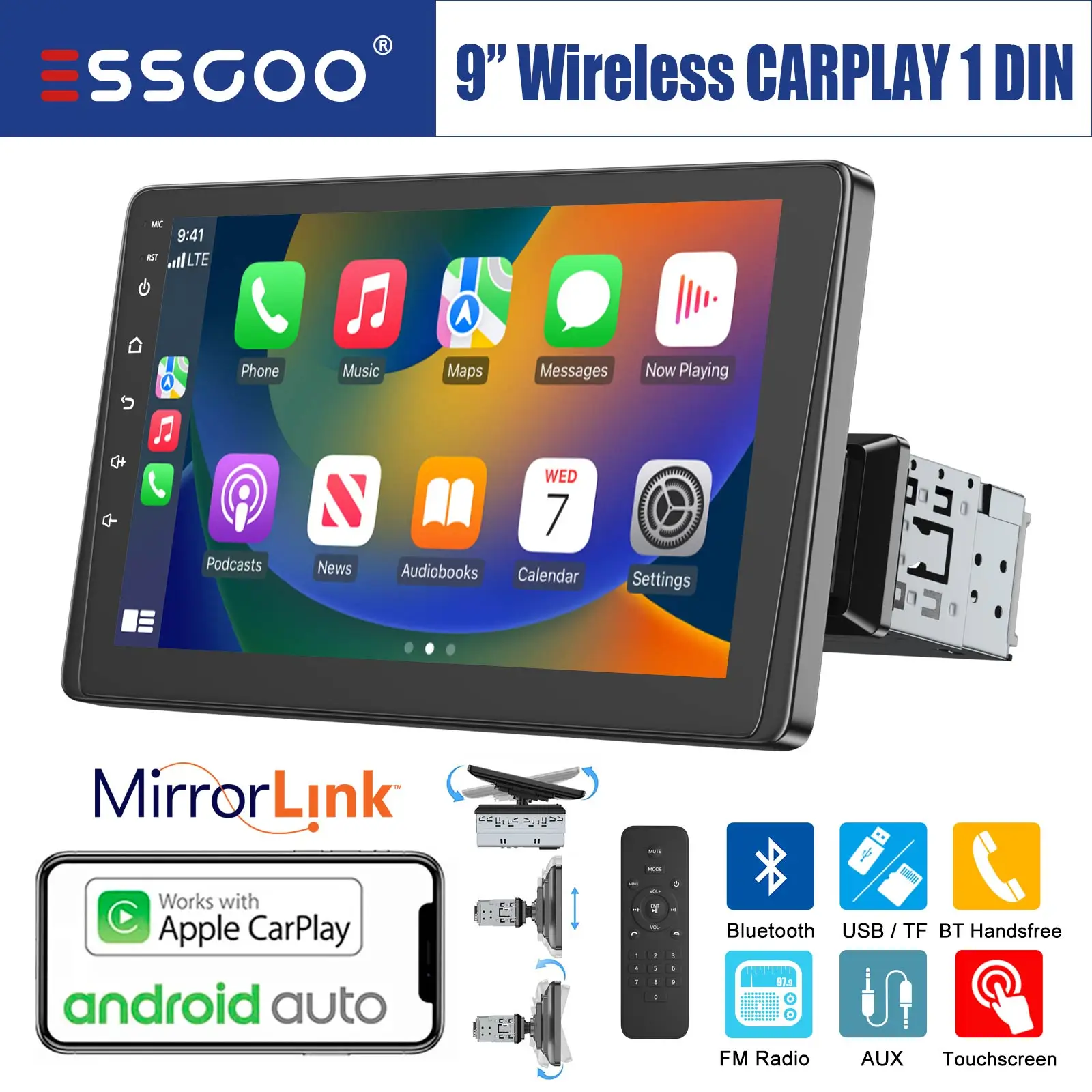 ESSGOO 9" Single DIN Wireless CarPlay Android Auto Car Stereo Player Radio IPS Screen FM BT Handsfree USB AUX TF SWC Mirror Link