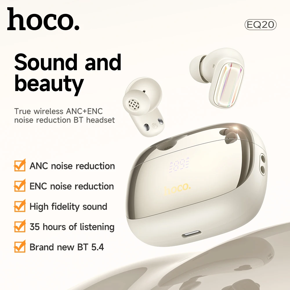 HOCO EQ20 In-Ear ANC Noise Cancelling Wireless Earphones Sports Bluetooth 5.4 Mobile Phone Headphones LED Power Digital Display