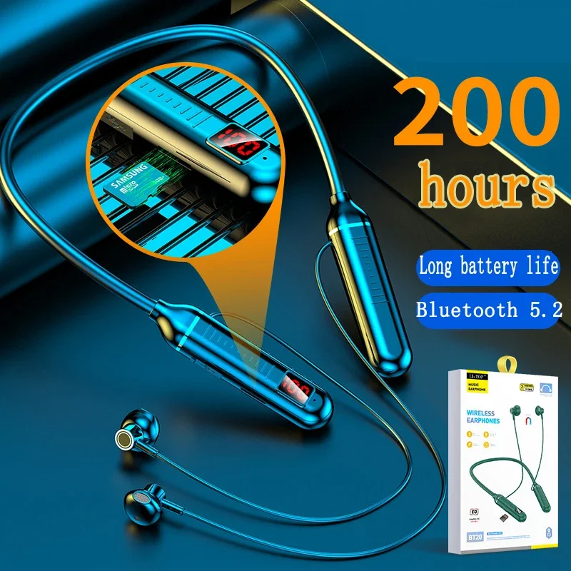 Stereo hanging neck wireless bluetooth headset magnetic suction with digital display large capacity half in-ear sports headset  Read more