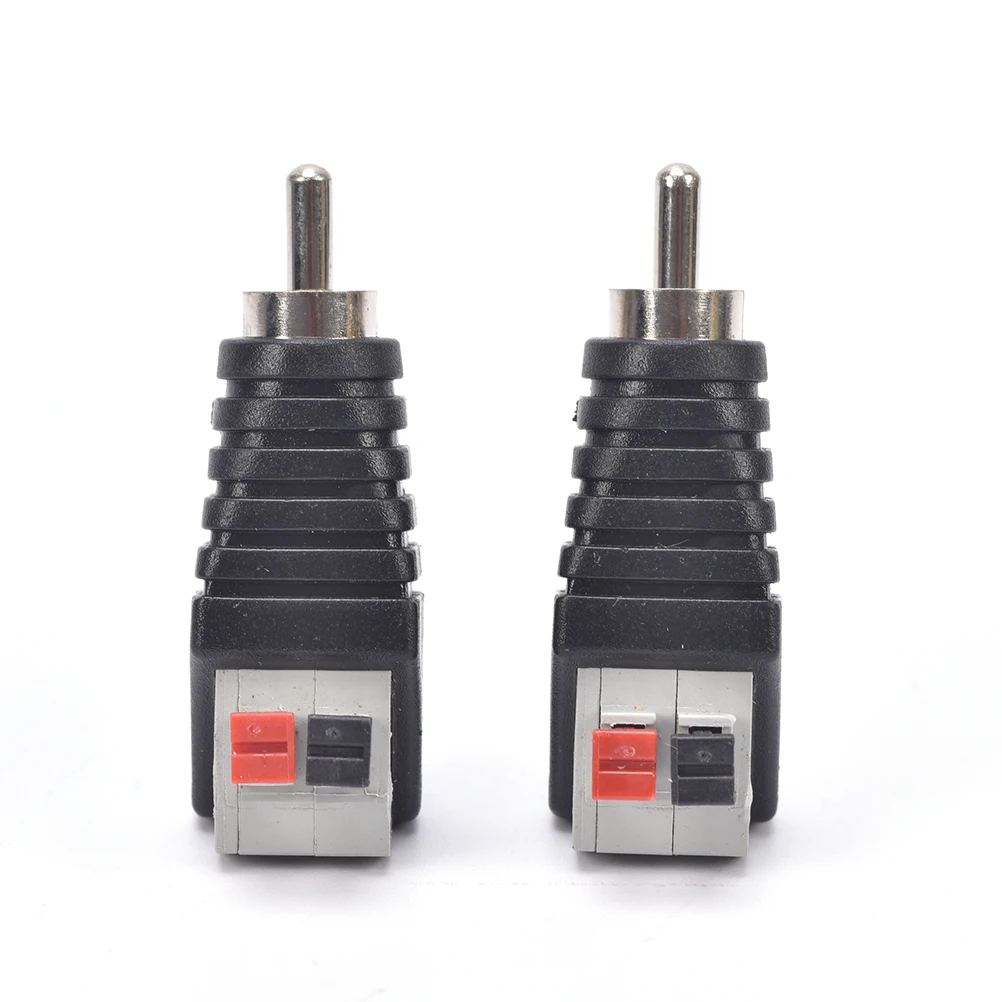 High Quality 2PCS Speaker Wire A/V Cable To Audio Male RCA Connector Adapter Jack Press Plug
