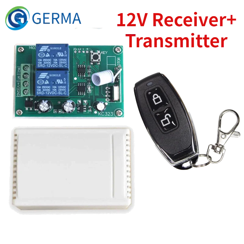 GERMA 433Mhz Universal Wireless Remote Control Switch DC 12V 2CH RF Relay Receiver Module + 2 CH RF 433 Mhz Remote Transmitter