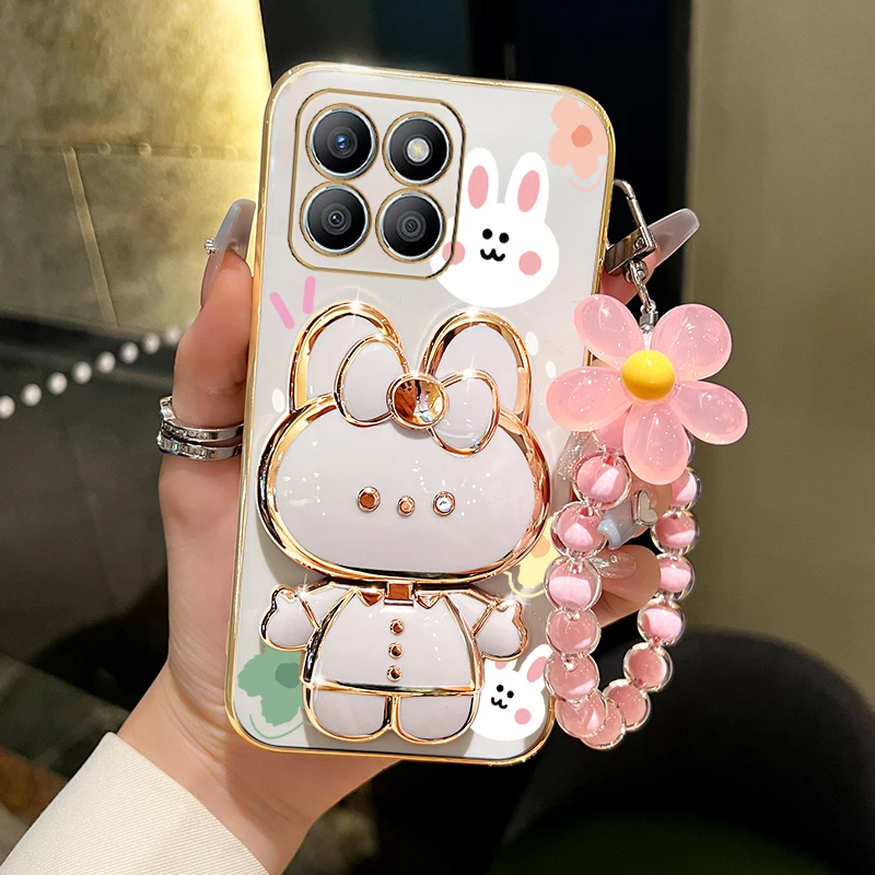 X 8B Flower Strap Rabbit Makeup Mirror Phone Holder Case On For Huawei Honor X8B HonorX8B Luxury Girl Woman Used Cover  Read more