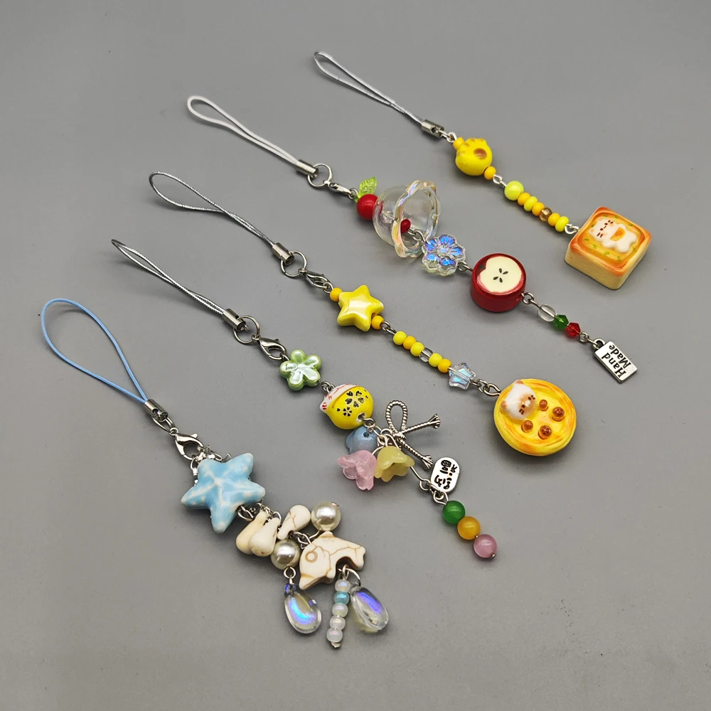 Multiple Designs Flower Cat Seastar Cartoon Phone Charms Strap Keychain Keycord Girl Handmade Pendant For iPhone