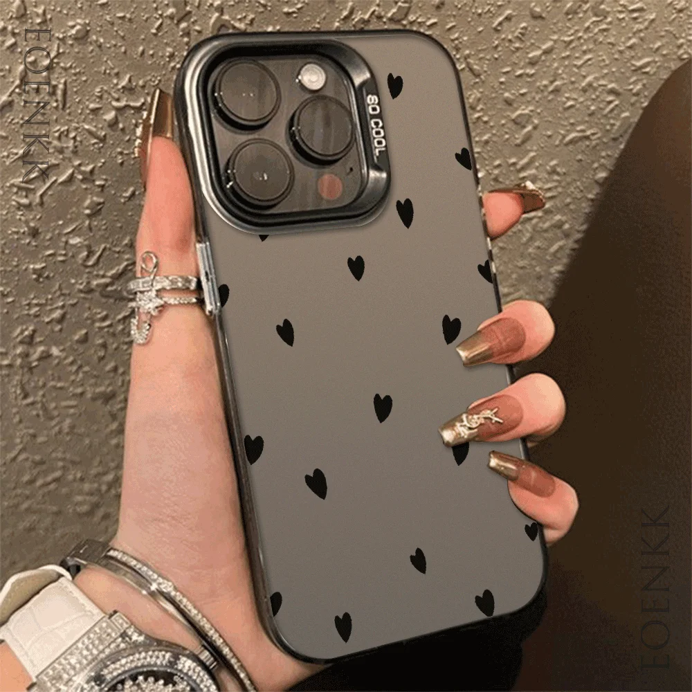 Black Love Heart Laser Matte Hard Phone Case For Samsung Galaxy S25 S24 Ultra S23 S22 S21 S20 Ultra Plus FE A25 A35 A55 5G Cover