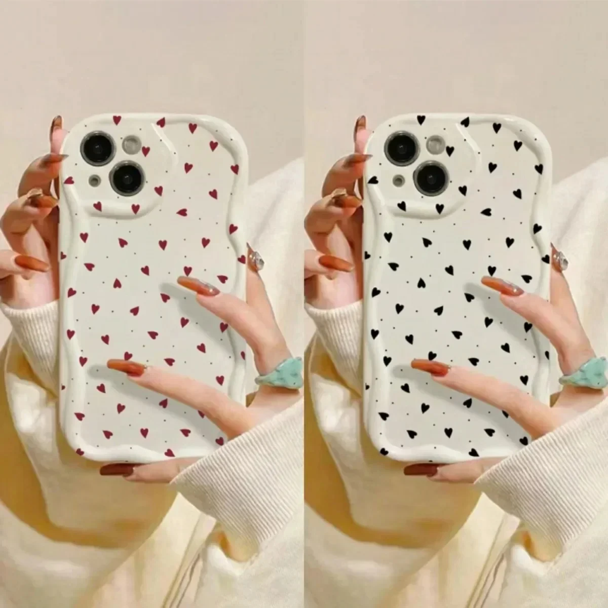 Love Heart Phone Case for Samsung Galaxy S24 S23 S22 S21 Plus Ultra FE A73 A72 A71 A52 A51 A32 Wavy Curved Edge Case