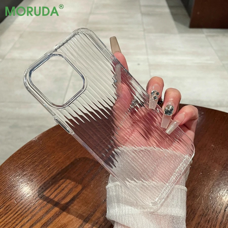 Transparent Corrugated Soft Phone Case For iPhone 16 ProMax Plus 15 14 13 12 Pro Max 11 Shockproof Bumper Glossy Stripes Cover