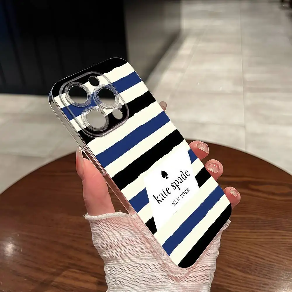 K-Kate S-Spade Stripe Phone Case Phone Case For IPhone 11 12 13 14 15 16 Pro Plus Mini Max Transparent Case TPU Soft Case