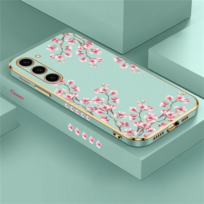 S24 S23 S22 S21 Flower Case For Samsung Galaxy S10 Plus S20 S21 FE S22 Ultra NOTE 20 10 Lite Silicone Plating Phone Cover Coque