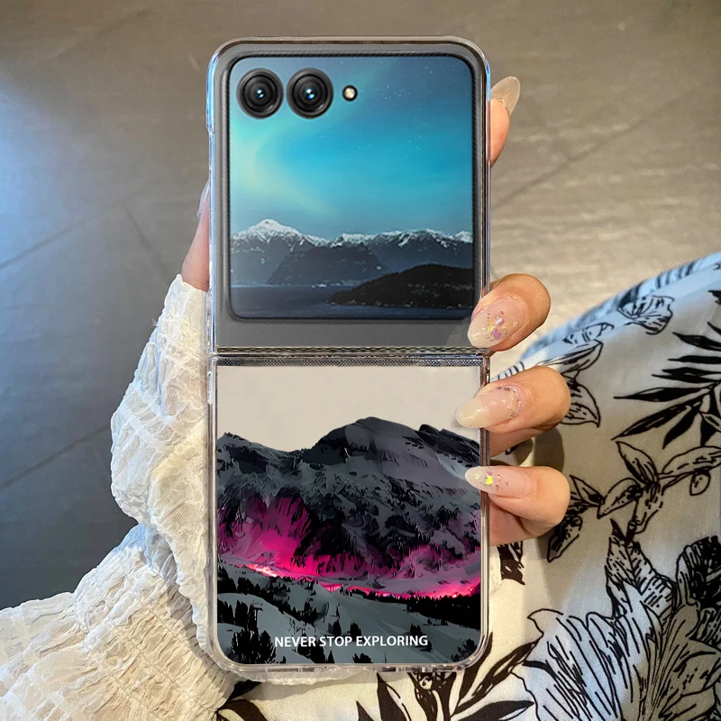 Snowy Mountains Travel Pattern Case For Motorola Razr 50 Ultra Razr 40 Ultra 50 40 Clear Hard PC Folding Shockproof Phone Cover