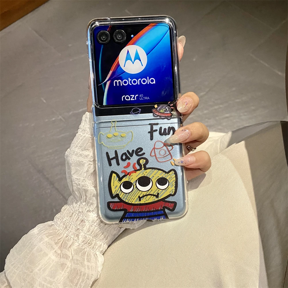 Toy Story Alien Transparent Case For Motorola Moto Razr 40 Ultra 50 60 Razr 2023 2024 2025 Cute Cartoon Folding Cover