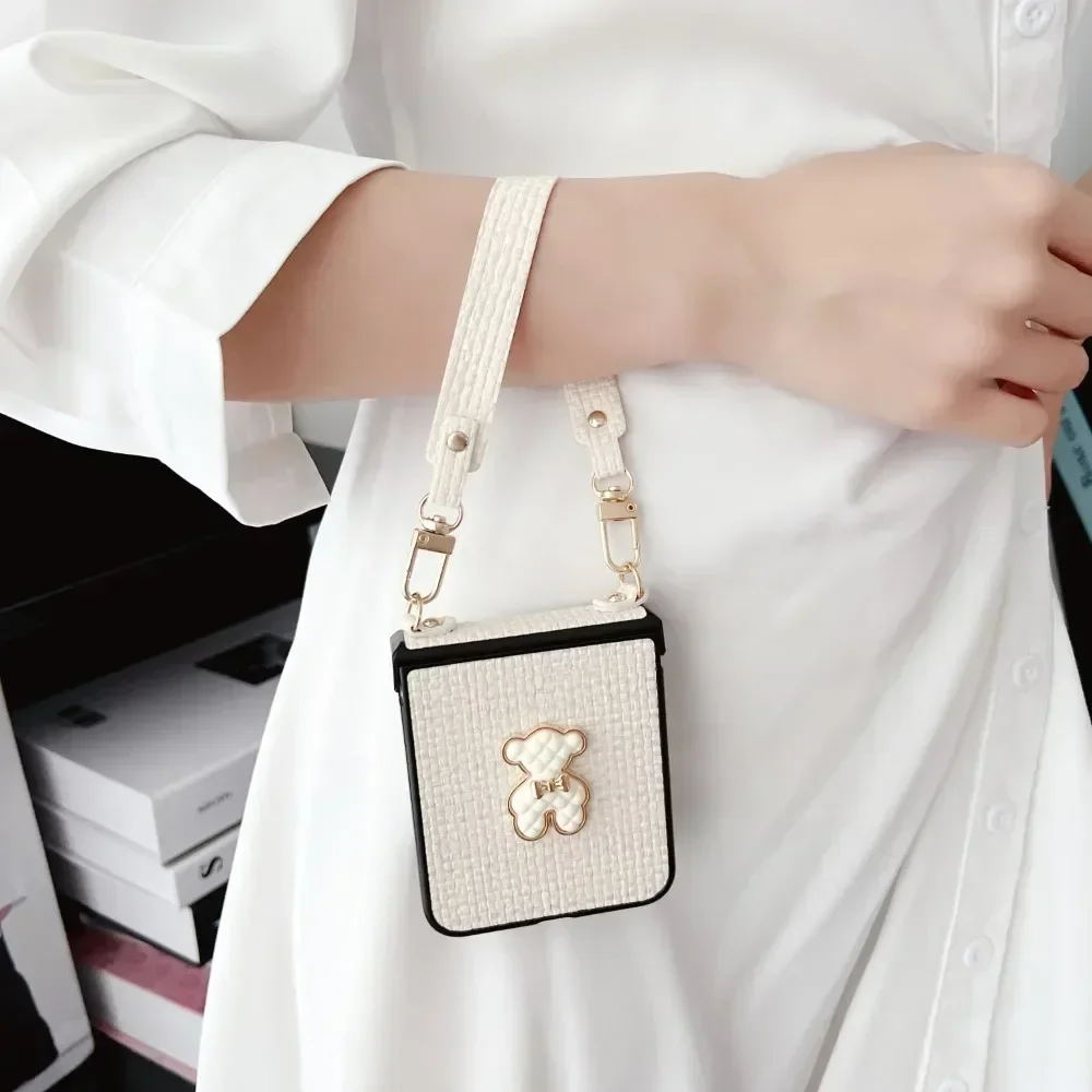 For Motorola Razr60 Ultra Razr50Ultra Razr40Ultra Phone Case Weave Pattern Bracelet Hinge All-inclusive Folding Shockproof Cover