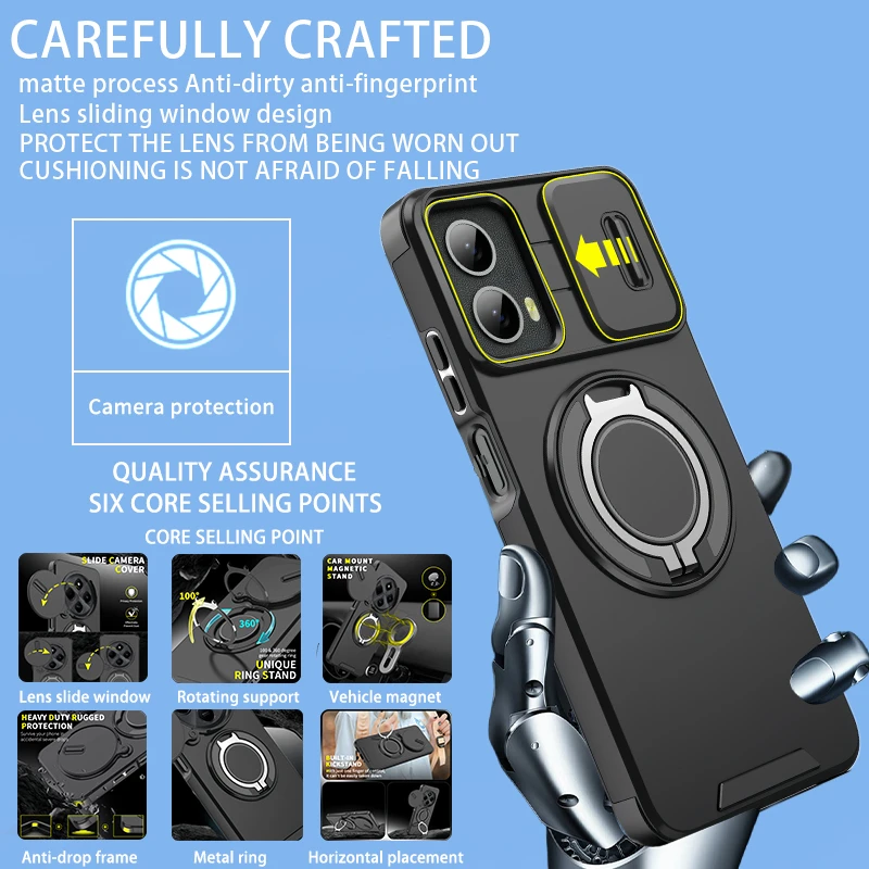 For Motorola Moto G 5G 2024 Case Magnetic Ring Stand Holder Armor Phone Case For Moto G 5G 2024 Slide Lens Protect Back Cover