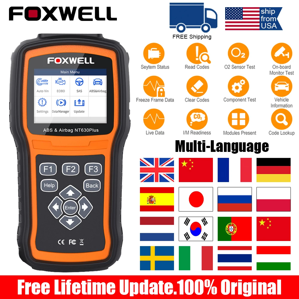 Foxwell NT630 Plus OBD2 Automotive Scanner Engine Check ABS SRS EPB OIL SAS Calibration Code Reader OBD 2 Car Diagnostic Tool