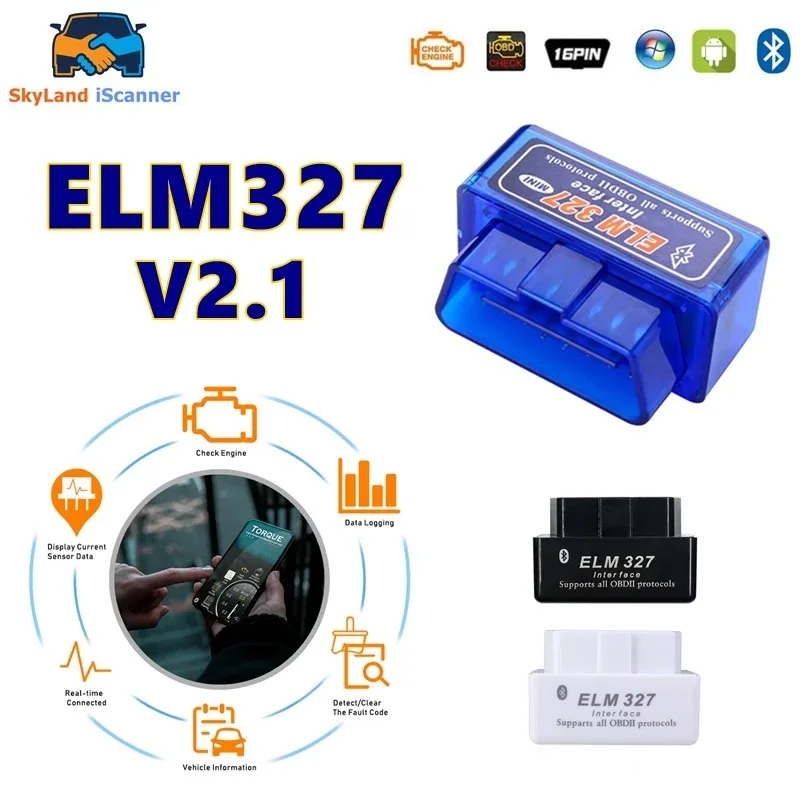 16 Pin 12V Car Diagnostic Tools V1.5 ELM327 OBD2 Code Reader Scanner Bluetooth 5.1 OBD 2 Interface Adapter Auto Engine Tester