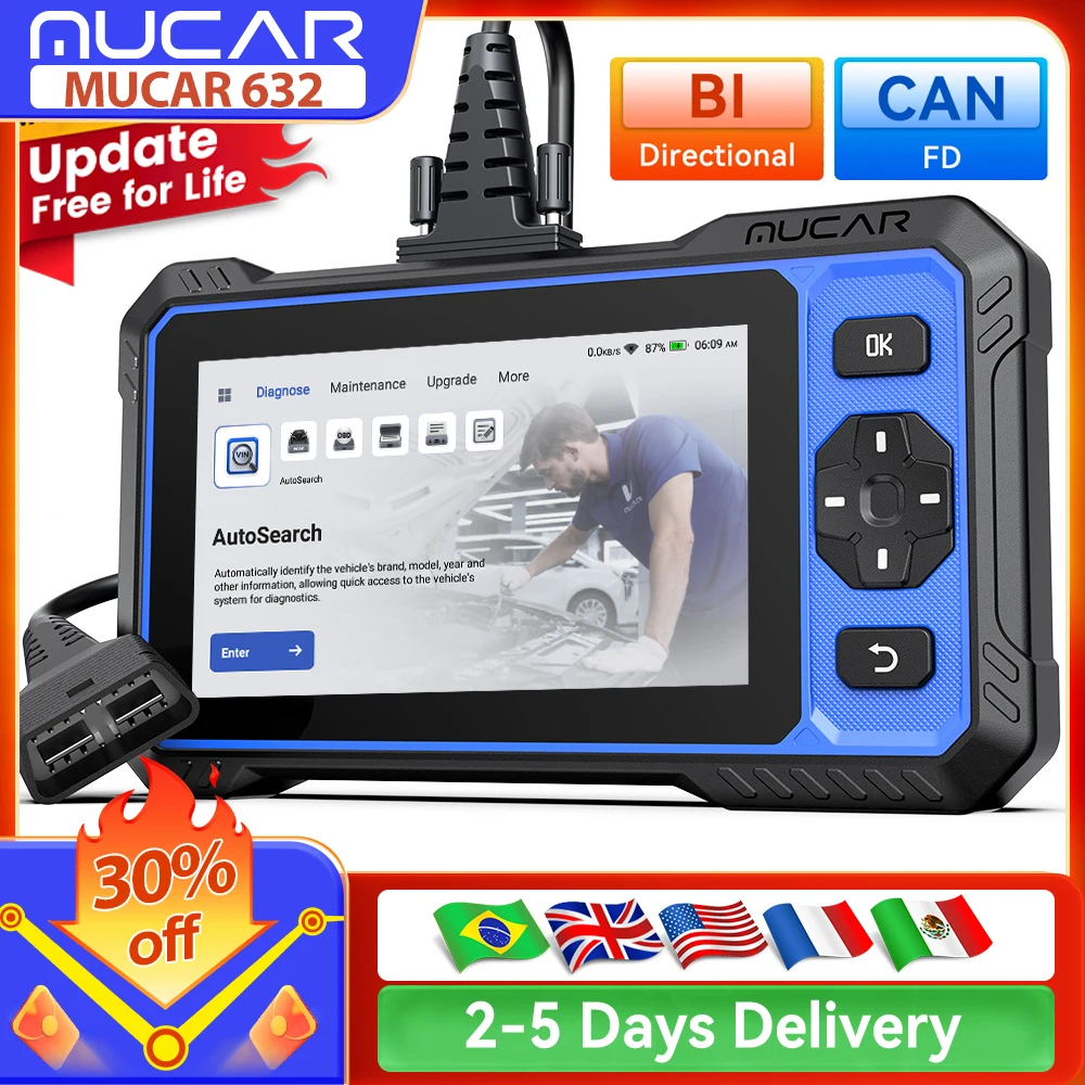 MUCAR 632 OBD2 Diagnostic Tool CANFD Protocal ECM/Transmission/ABS/SRS Diagnosis obd 2 Scanner 15 Reset Lifetime Free Update