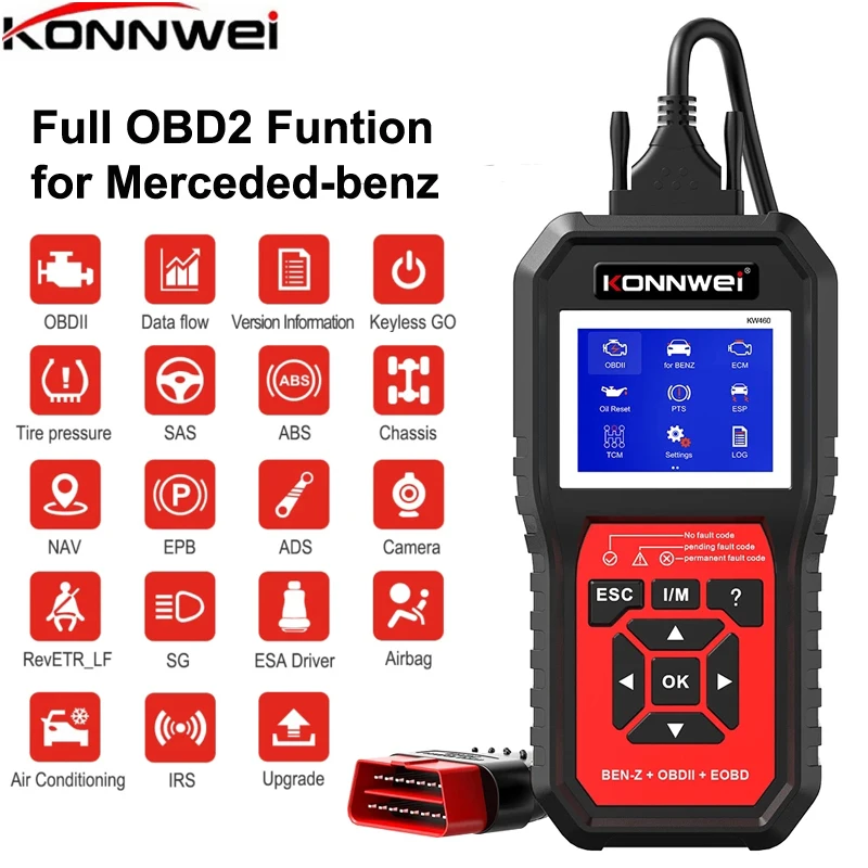 Professional OBD2 Scanner KW460 Code Reader for Mercedes-Benz ABS Airbag Oil ABS EPB DPF SRS TPMS Reset Car OBD2 Diagnostic Tool