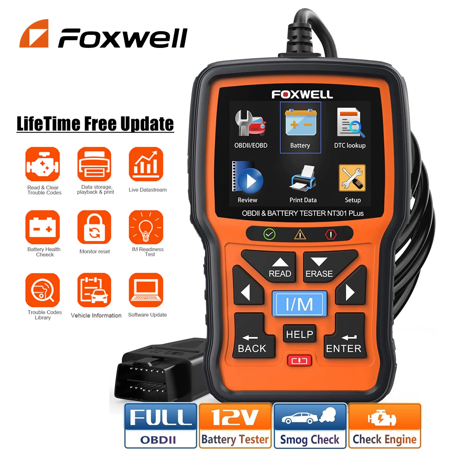 FOXWELL NT301 PLUS CAN OBD2 Car Code Reader Battery Tester Automotive Scanner Tools Check Engine OBD2 Diagnostic Tool PK ELM327