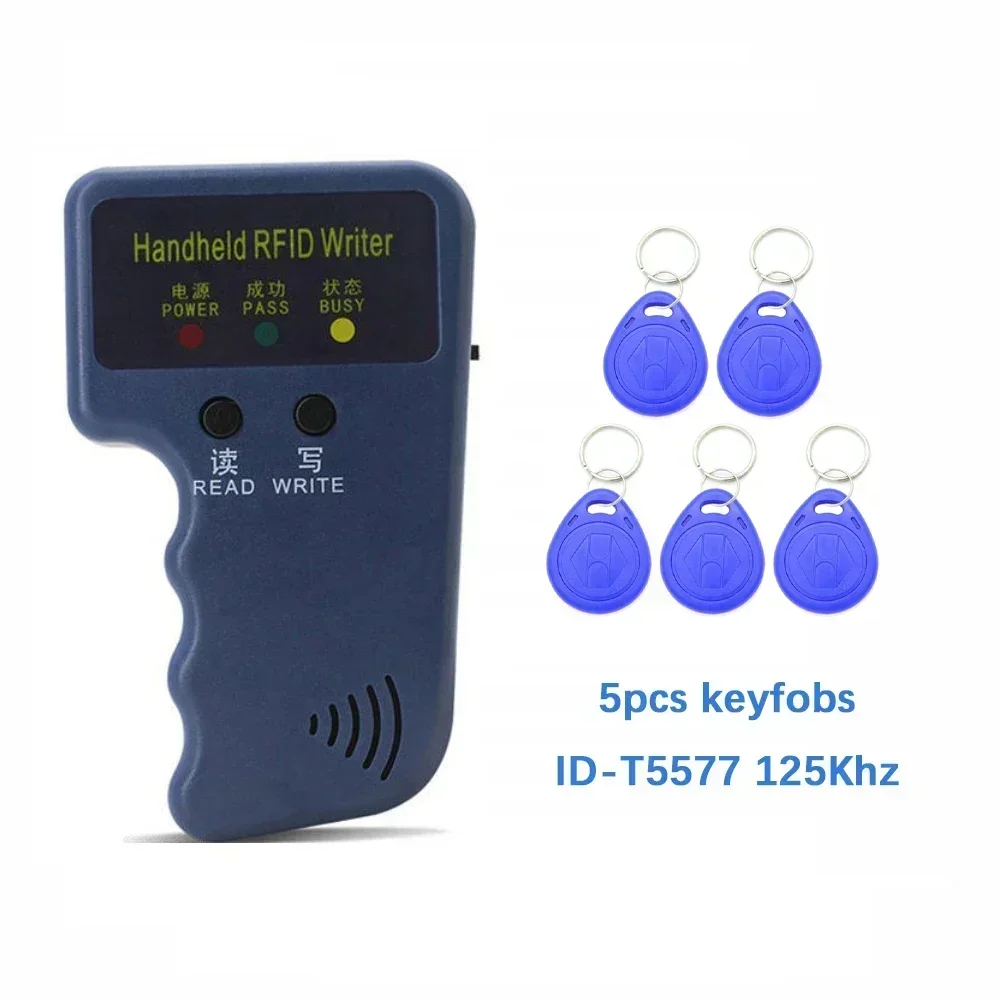 Repetitive Handheld 125KHz EM4100 5200 RFID ID Card Writer Copier Duplicator Programmer + 2pcs T5577 Rewritable Keyfobs Tags