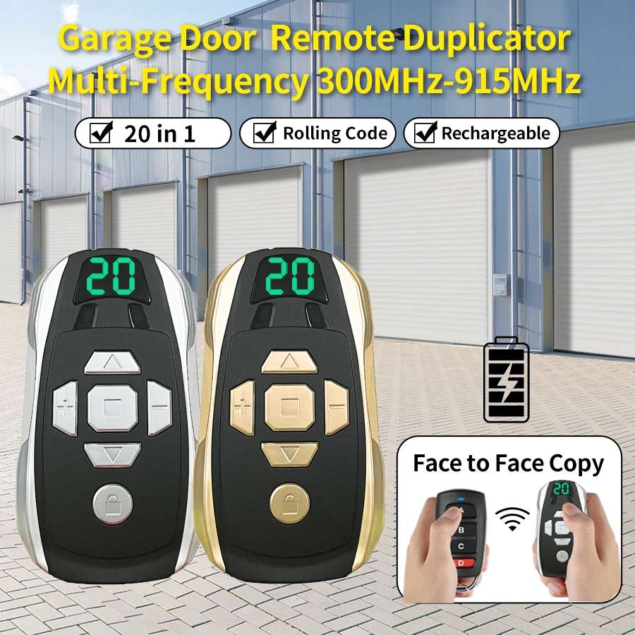 20-Channel Rechargeable Key Duplicator for Universal Garage Door Remote Control Gate Controller Clone Multi-frequency 300-915Mhz