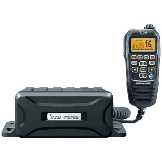 ICOM VHF Fixed Marine Radio with Command Mic - Icom’s M400BB is perfect for boats that need a radio but don’t have room on the helm. The M400BB consist of a two-piece, black box configuration. Install the full RF black box unit in an...