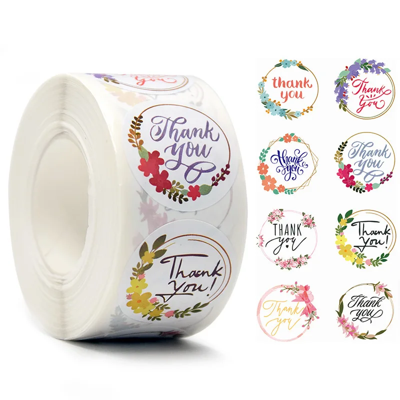 Thank You Stickers Roll |1 inch | 500 Labels for Small Business Stickers| 8 Designs