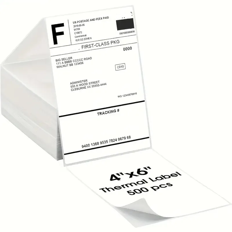 4x6 Inch Direct Thermal Labels 500 Labels Per stacked -Strong Adhesive, Labels Resistant to Water & Grease For shipping label
