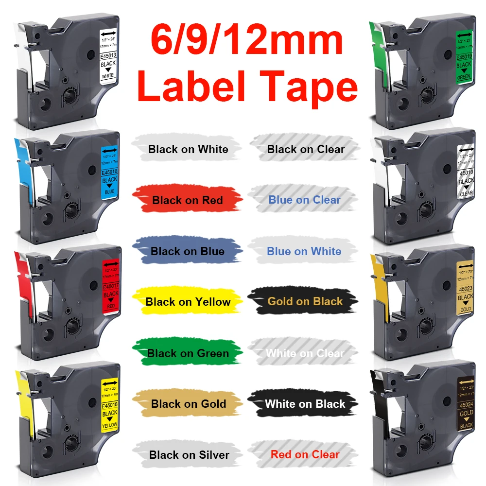 6/9/12mm Label For Dymo D1 45013 45010 45018 40913 43613 Label Tape 45022 45023 45024 for Dymo LabelManager 160 280 Label Maker