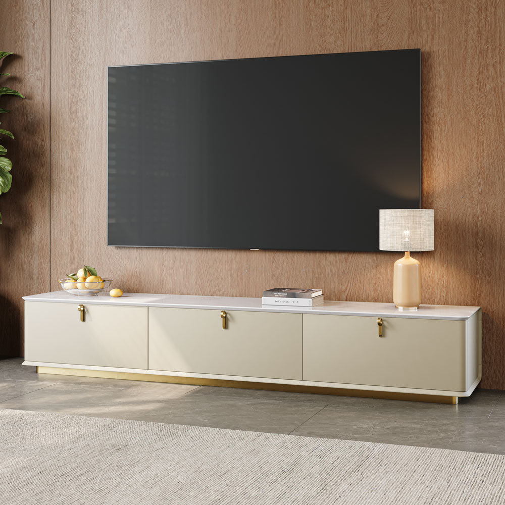 79" Luxury TV Stand with Marble Tabletop, Large TV Console with Storage, Beige TV Cabinet, Perfect for 75-Inch TVs