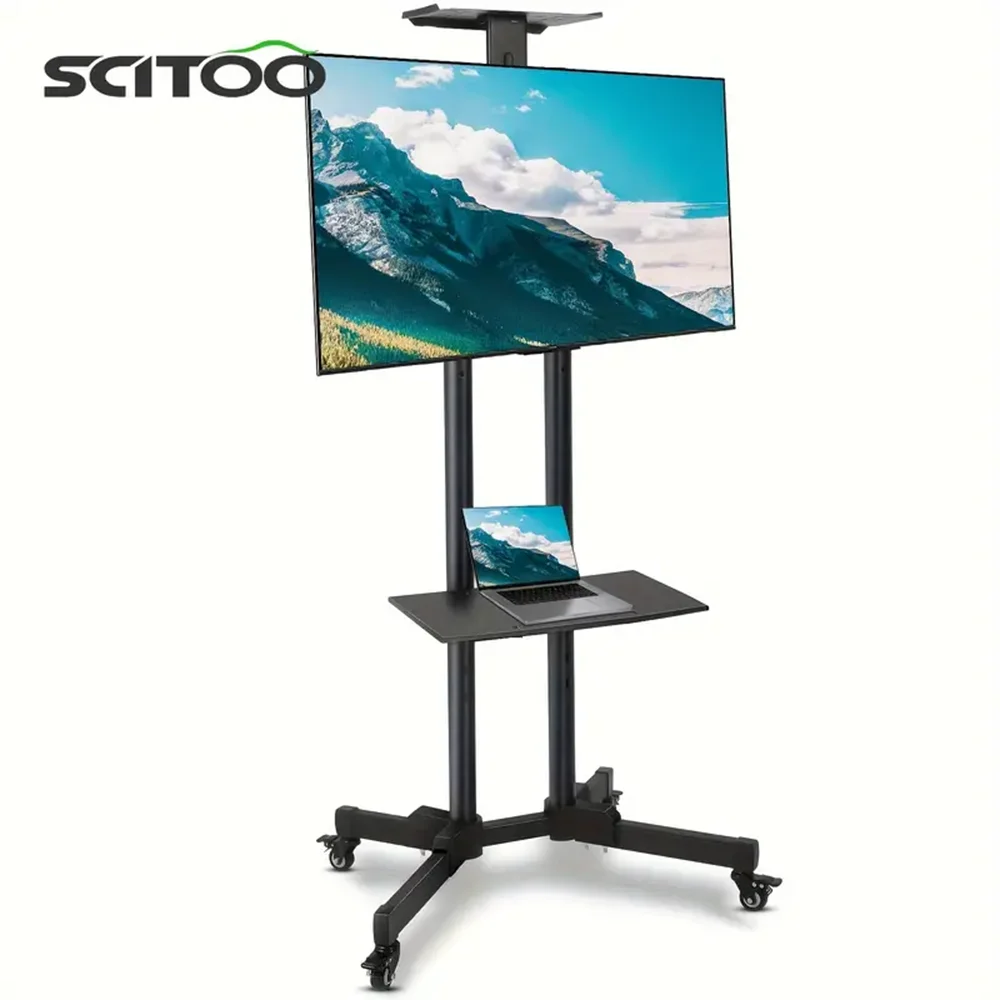 Mobile TV Cart With Wheels For 32-70 Inch LCD LED OLED Flat Curved Screen TVs Up To 110 Lbs Height Adjustable Portable TV On Whe