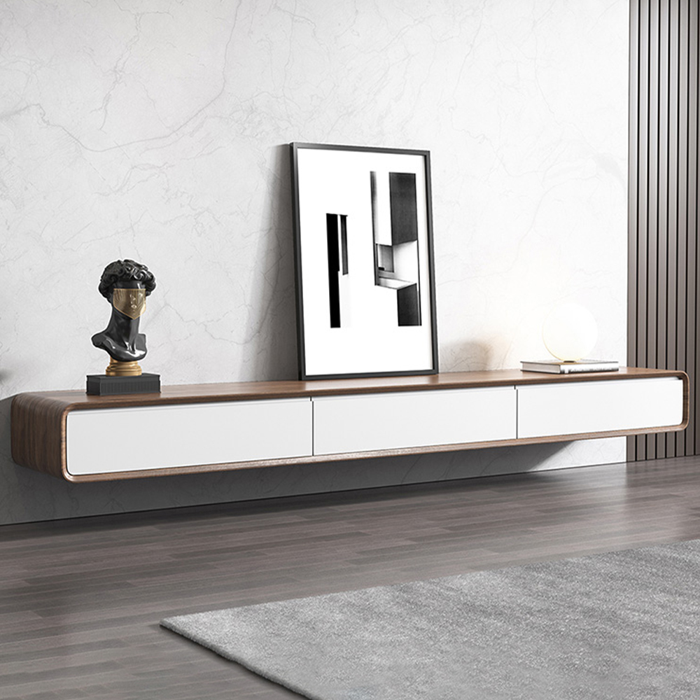 63" Minimalist Floating TV Stand, Modern Wall-Mounted Entertainment Center with 3 Drawers, Walnut Veneer, Media Console, TV Console, Perfect for 55-inch TVs