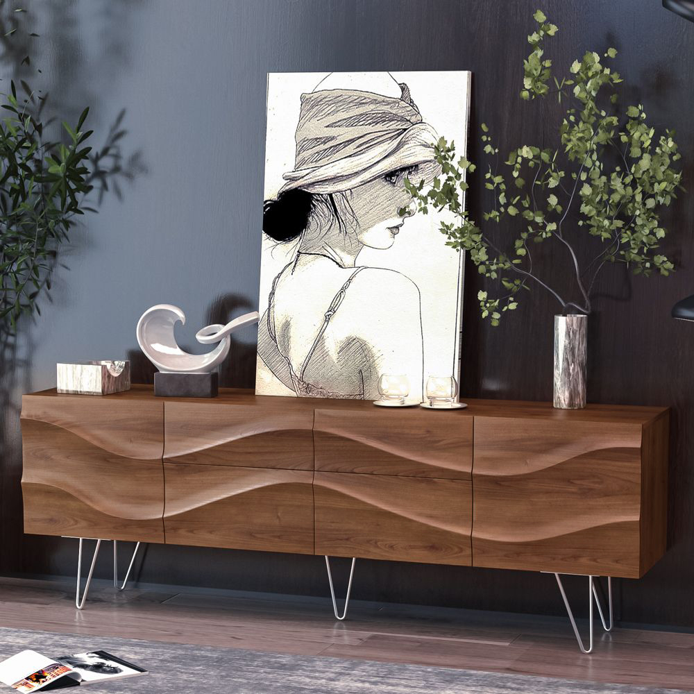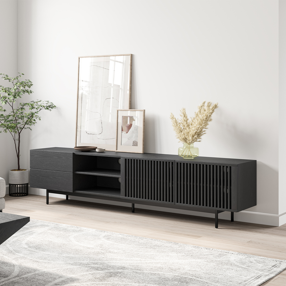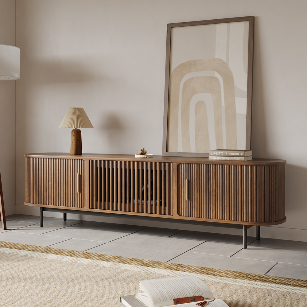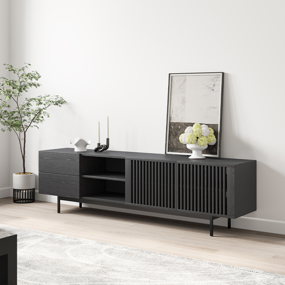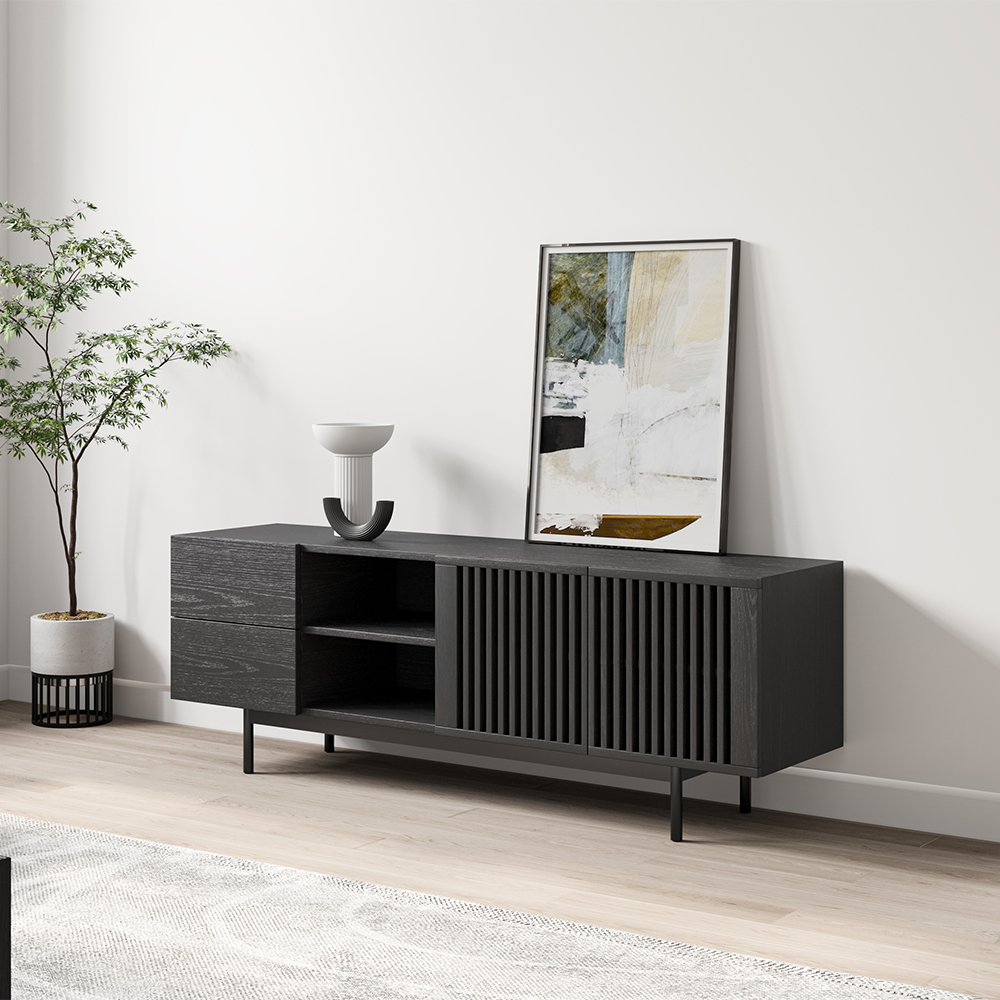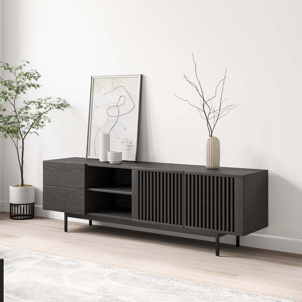 [Eco-friendly Materials]Made of Plywood and Ash Slatted fence and Ash Tambour door , it is environmentally friendly and durable.[Elaborate Design]Featuring aTambour door design, it is elegant and prevents dust from entering the TV cabinet.[Vintage...