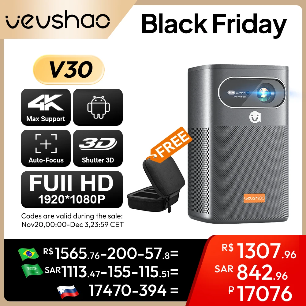 Vevshao V30 3D Projector Cinema Smart 4K Android WiFi Portable 1080P Home Theater Video LED DLP Projector with 15000mAh Battery  Read more