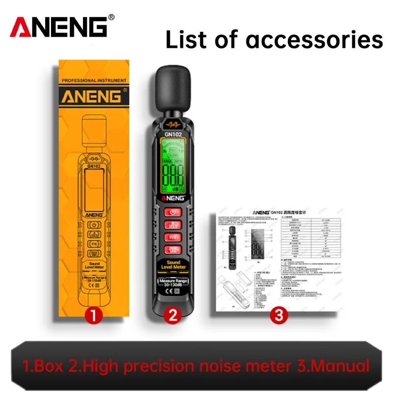 GN102 Mini Decibel Meter HD Screen Display DB Noise Meter 30-130dB Sound Tester ANENG Household Volume and Sound Level Meters