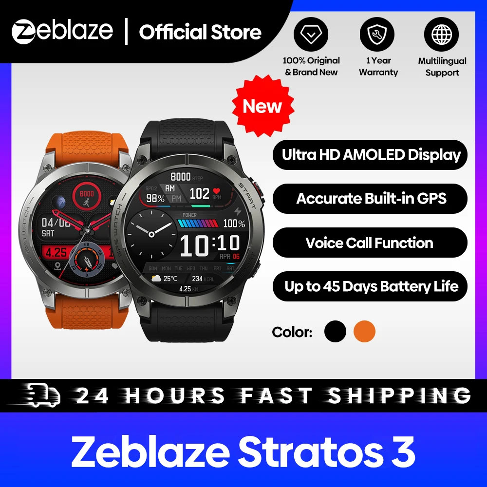[Flagship 2023] Zeblaze Stratos 3 Premium GPS Smart Watch Ultra HD AMOLED Display Built-in GPS Hi-Fi Bluetooth Phone Calls  Read more