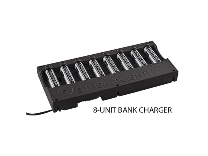 Streamlight 8-Unit Bank Charger w/Batteries Charger Type - 12V DC Black 20233. The Streamlight 18650 LI-ion rechargeable battery is an economical alternative to disposable CR123 cells used in newer Streamlight flashlights that are designed to accept...  Read more