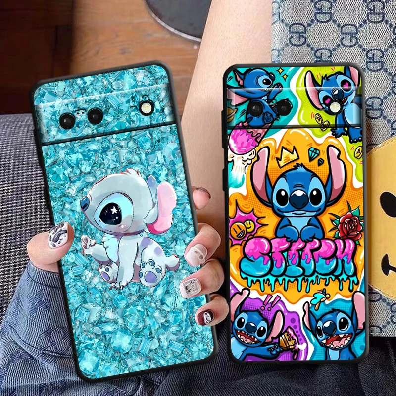 Disney Cartoon Stitch Art Phone Case For Google Pixel 8 7 Pro 6 Pro 6A 5A 5 4 4A XL 5G Black Soft Fundas Cover