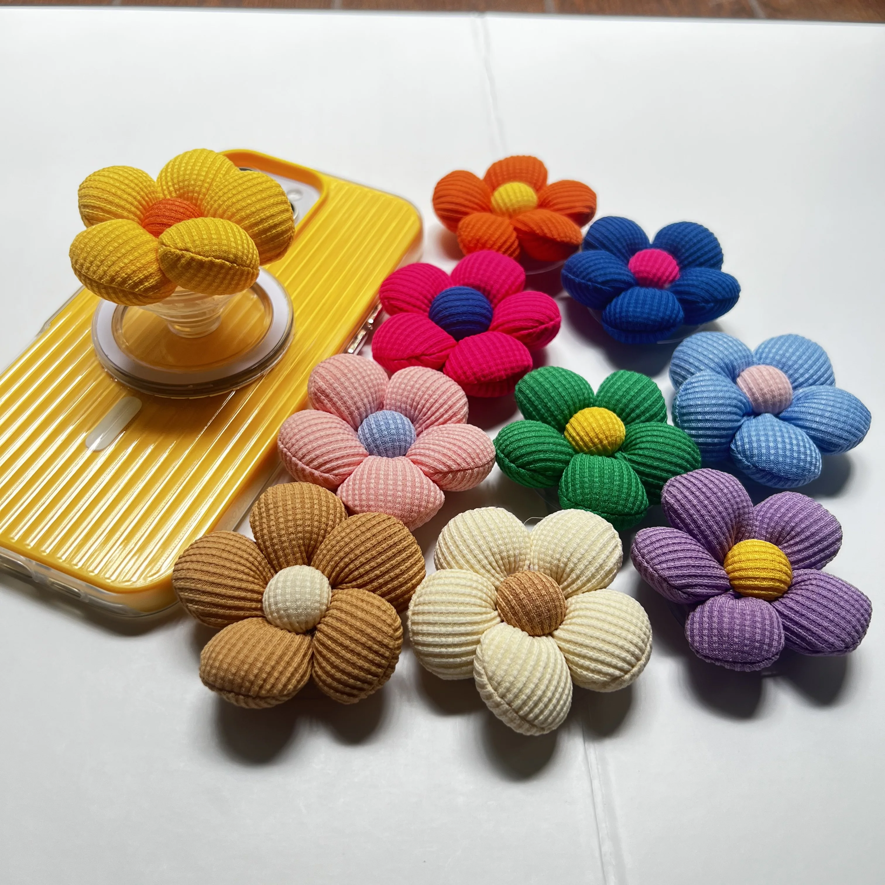 Korean Cute Colorful Fabric Flowers Phone Holder Griptok Finger Ring Support For IPhone Samsung Cases Socket Bracket Girl Gift