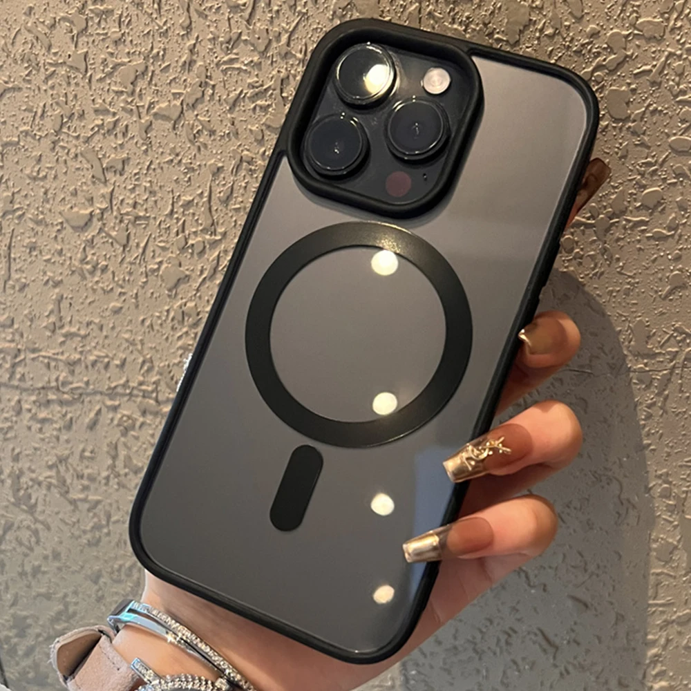 Luxury Transparent hard acrylic backboard For magsafe iphone 12 13 14 15 16 pro max Case Square Frame magnetic clear Cover  Read more