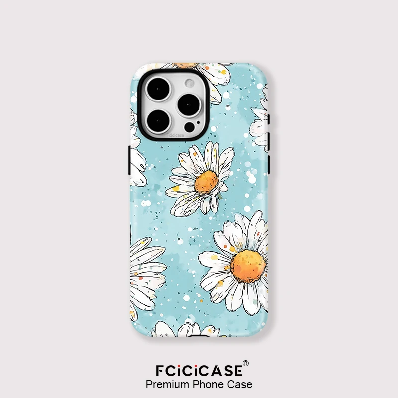 Fcicicase For Magsafe Magnetic Daisy Flower Case For iPhone 13 Pro 14 15 Plus 16 Pro Max 12 11 Shockproof Acrylic TPU Cover