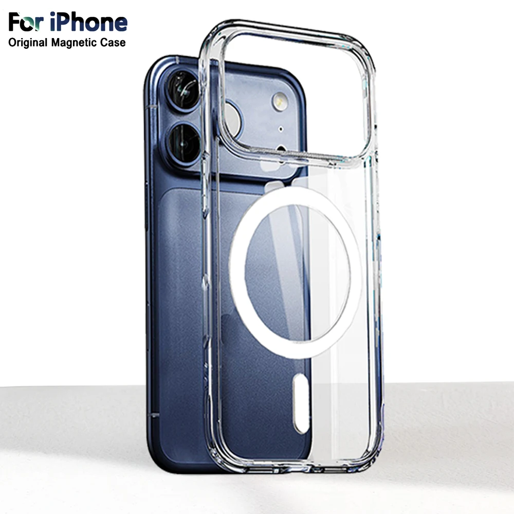 Luxury Clear Magnetic For Magsafe Wireless Charge Case For iPhone 17 Pro Max Air 16 15 14 Plus 13 12 11 Pro Max Acrylic Cover
