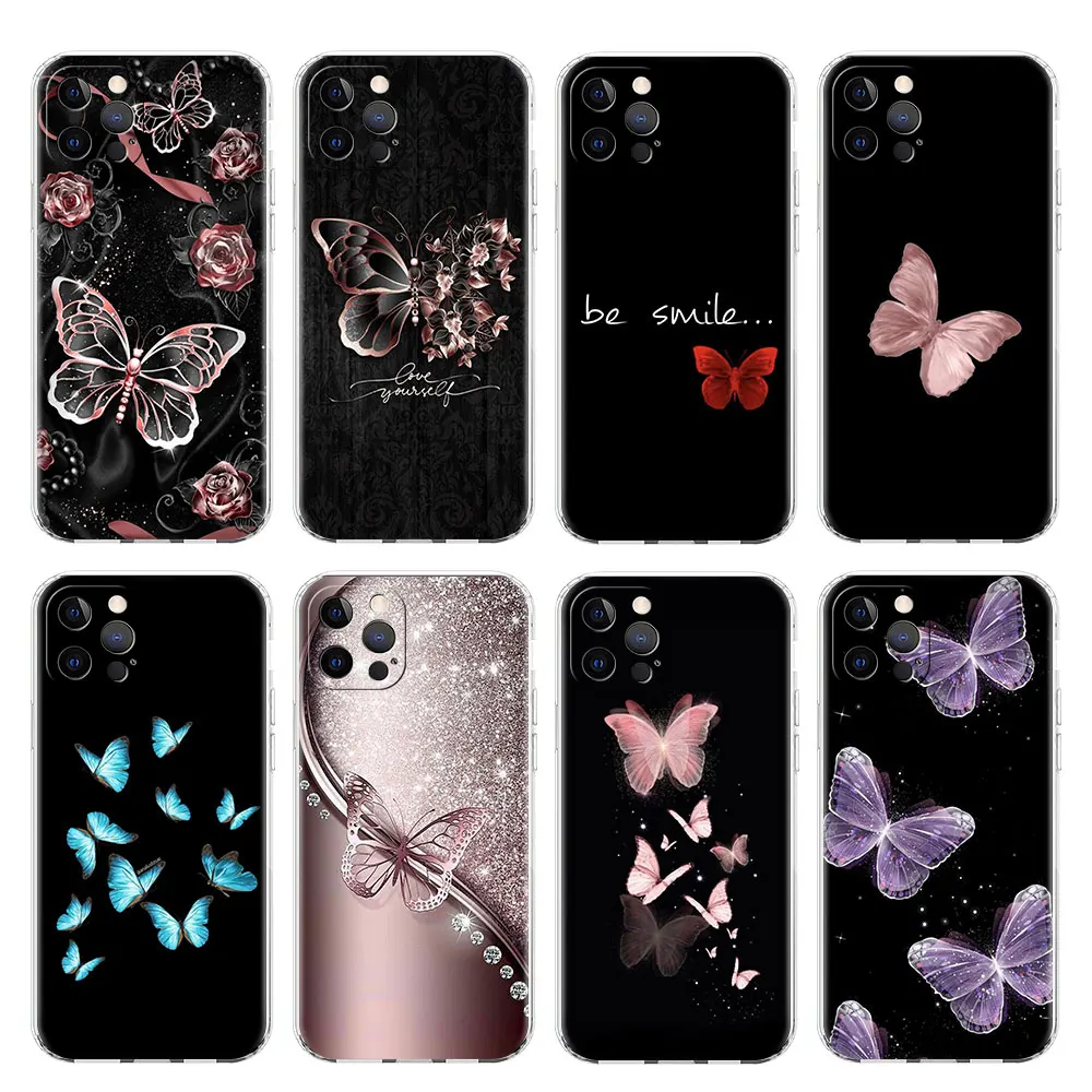 Clear Case For Apple iPhone 14 15 13 11 12 Pro 7 8 Plus XR X XS Max 6 6S 14Pro Silicone Phone Cover Beauty Pink Butterfly  Read more