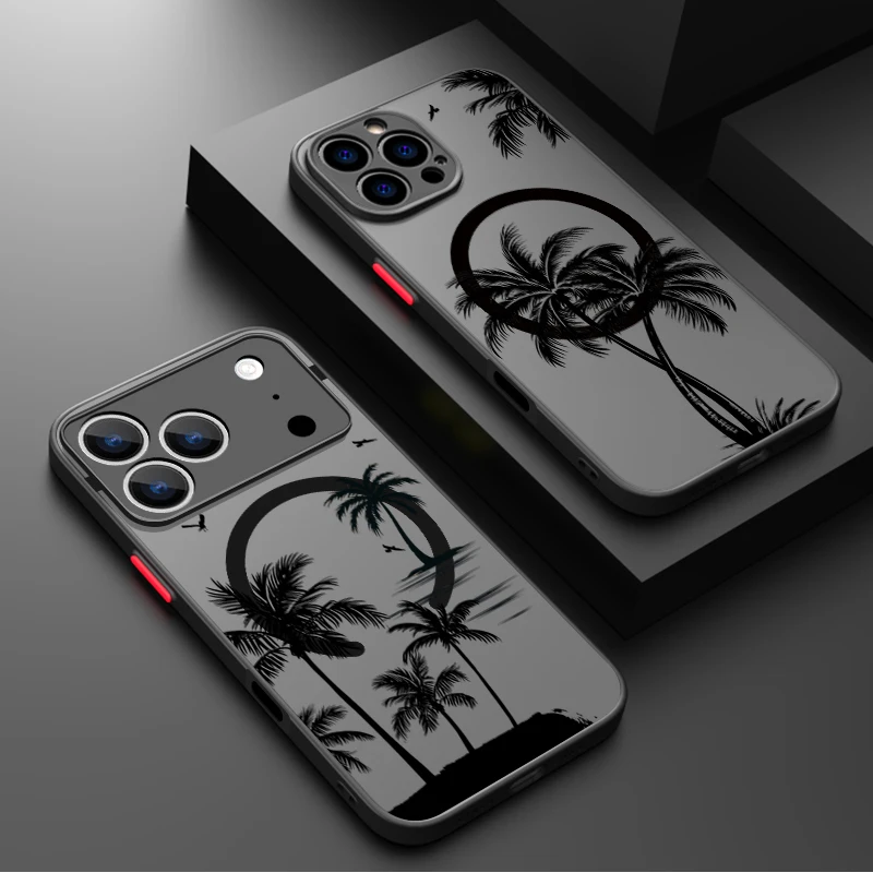 Magnetic Coconut Palm Pattern Case For iPhone 15 14 Pro Max 13 12 11 16 16e 17 Air For Magsafe Wireless Charge Back Cover Fundas  Read more