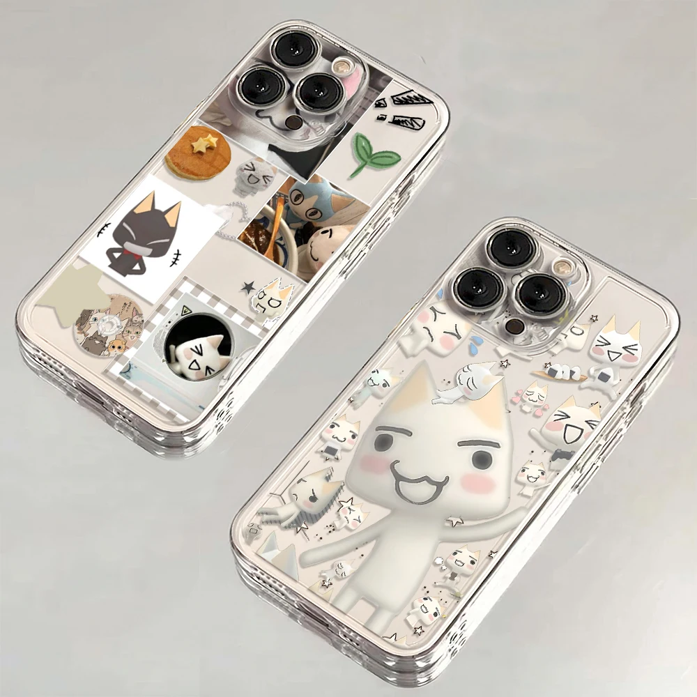 INS Cute Toro Inoue Cat Phone Case For iPhone 16 15 14 13 12 11 Mini Pro Max X XR XSMax 7 8 Plus SE20 Transparent Cover