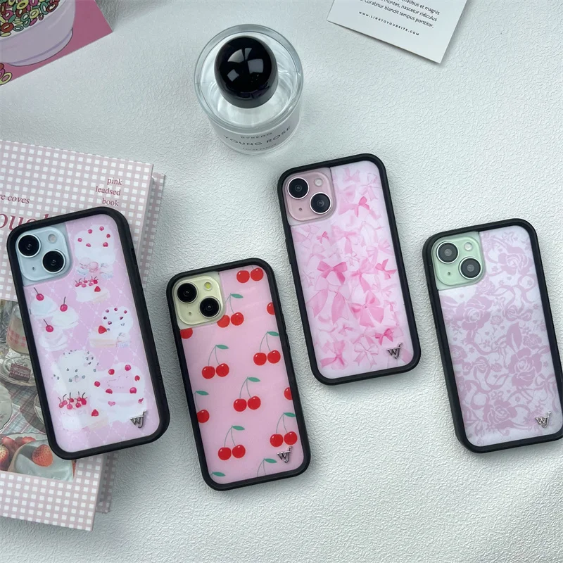 Wildflower 3D Flower Cherry Bow Phone Case iPhone 15 14plus 13 Pro phone case 12 13 16pro 17promax WF Cake Cute cartoon cover