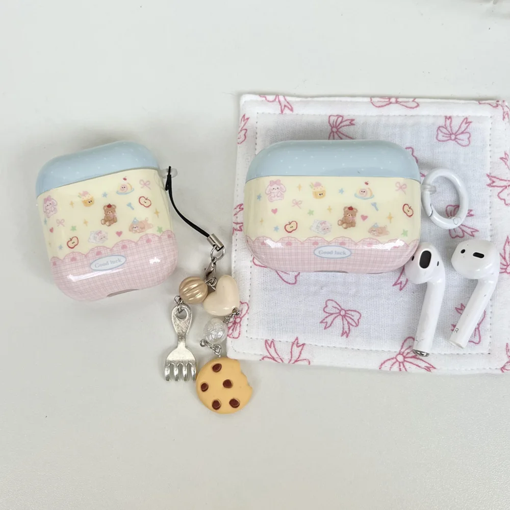 cartoon cute cookie bear love heart pendant shockproof silicone protective case for apple airpods 1 2 3 4 pro 2 earphone cover