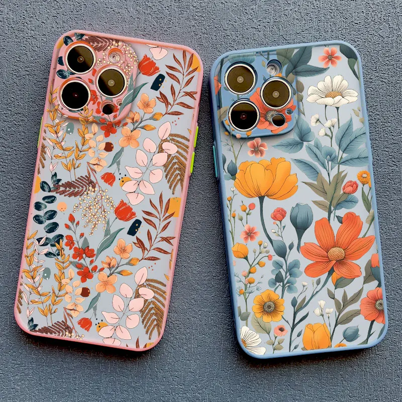 Luxury Retro Flowers Floral Phone Case For iPhone 15 14 Plus 13 12 Mini 16 11 12 13 14 Pro Max X XR XS Shockproof Cover  Fundas