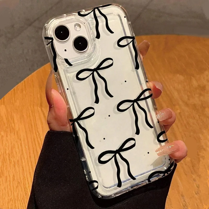 Cute Pink Heart Bow Case for IPhone 16 15 14 13 12 11 Pro Max 13 12Mini XS XR 7 8Plus SE 2022 Shockproof Soft Clear Cases Coque