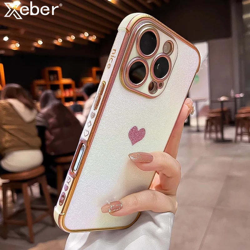 Electroplating Side Love Heart Phone Case For iPhone 17 Pro Max 16 15 14 13 12 11 Shockproof Back Covers  Read more